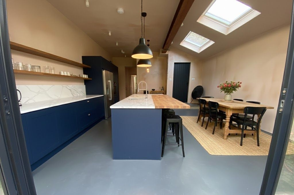 Ibex Builders completed a high-quality kitchen extension on Forest Road, E17, transforming the home into a bright and modern living space. The works included supporting and removing structural walls, new foundations, installation of steel beams, and a full drainage system. The extension features underfloor heating finished in micro-cement, a brand-new kitchen, modern lighting, three skylights, and Crittall-style doors, allowing plenty of natural light to flow through the space.
