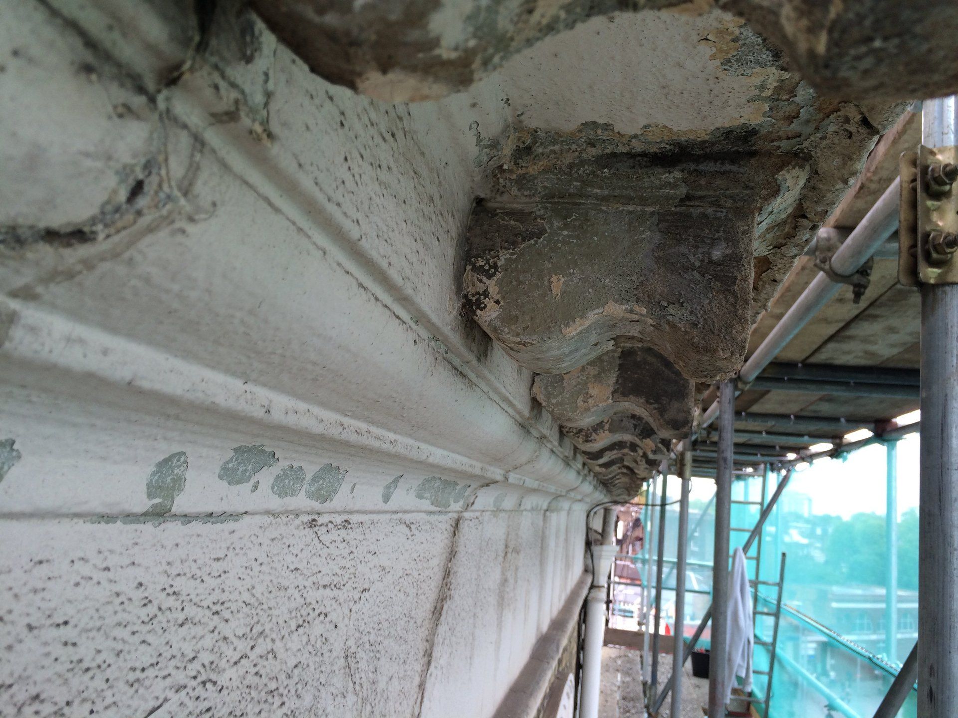 Years of exposure had resulted in fractured stonework, failing mouldings, and widespread surface contamination across the front elevation.